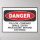 Danger Confined Space Entry Safety Warning Poster