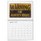 BTW - This calendar is designed to look best in the two page layout - we have designed a 'Danger Signs' single page calendar version as well.