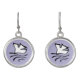 Dangle drop pierced earrings are shown with a black and white Baptism dove print design.