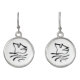 Dangle drop pierced earrings are shown with a black and white Baptism dove print design.