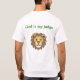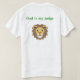 The name Daniel in the original Hebrew script, nice calligraphy, with the name's meaning on the back of the shirt in English, along with a lion reference to the biblical story of Daniel in the lion's den.