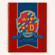 Daniel name meaning shield red blue boys notebook. Galiant royal crown knights style crest shield monogram letter D art name perfect for kids and teens in shades of red, blue, gray and yellow. Personalize with your own name beginning with D and name meaning or a message or subject for a personalized touch. Reads Daniel God is my judge Intuitive, determined and magnetic. Unique royal style crest drawing, featuring a lions head, crown, star and initial monogram D letter, graphic art and design by Sarah Trett for www.mylittleeden.com and namesense