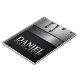 Polished chrome nameplate reading Daniel with dripping liquid metal and strong reflective highlights. Embossed 3D typography on a sleek dark background evokes luxury, modern branding, industrial design and custom identity.
