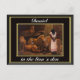 Daniel standing in the lions den on a gold and black postcard. Has Daniel in the lions den with seven lions wanting to eat him .As he plays to god .He has a red and white rob on.