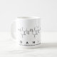 Daniela spelled out in amino acids as D A N I E L A (Aspartic acid Alanine Asparagine Isoleucine Glutamic acid Leucine Alanine) on a mug for the scientist in you.