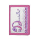 Encourage saving with this cute girls personalized name beginning with D and name meaning hearts and flowers designed wallet. Ideal to give when gifting money. Currently reads Danielle God is my judge. Intuitive, determined and magnetic. © Unique art design by Sarah Trett. www.sarahtrett.com for www.mylittleeden.com on zazzle.