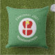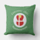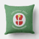 Christmas decor outdoor pillow has an angel dressed in the red and white flag of Denmark. The Danish Christmas angel is in the center of a circle of white squiggly squares surrounded by a background of green squiggly squares. Add your own text or personalize with a name and customize with the year.