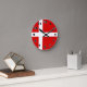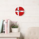 Danish flag of Denmark custom round wall clock. Patriotic scandinavian home decor / wall decorations for office, bedroom, company, business, bar, pub, cafe, shop, store, work space, kitchen etc. Danmark pride.