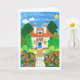A 'Good Luck with Your Move' card with a Danish greeting and a pretty cottage from a handpainted paper collage by Judy Adamson. The inside is left blank for your own message and the front greeting can be changed by contacting me through my store.