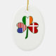 Design features Shamrock with heart-shaped leaves. Each heart has the flag of a different country: USA, Ireland and Denmark. Great way to share your Irish, American and Danish roots. Really great fun on St. Patrick's Day! Fun at family reunions. Great gift at Christmas, Valentine's Day, and of course St. Patrick's Day for anyone you know who is proud of their American, Irish and Danish ancestries, heritages and cultures.