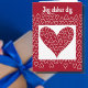 Danish Valentine's Day Card in Red and White, the colors of flag of Denmark. Jeg elsker dig means I love you in Danish. White hearts on a red card saying Jeg elsker dig. Inside is the English translation--I love you in Danish.