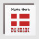 The Danish word for Denmark is DANMARK. It appears in this design, in the red and white colors of the Dannebrog, below the flag. Above, a place for your name, to add a personalized look or create a customized gift for your favorite Dane.
