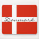 The national flag of Denmark, Dannebrog, is red with a white Scandinavian cross that extends to the edges of the flag.