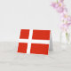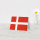 The national flag of Denmark, Dannebrog, is red with a white Scandinavian cross that extends to the edges of the flag.