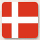 The national flag of Denmark, Dannebrog, is red with a white Scandinavian cross that extends to the edges of the flag.