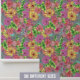 This peel and stick wallpaper features a vibrant and captivating design. The color scheme is rich, combining shades of pink, orange, yellow, green, and hints of blue. Against a muted gray background, the vivid colors stand out beautifully. The pattern is dense and intricate, showcasing stylized flowers and foliage. Each element is detailed with fine line work, creating a whimsical yet sophisticated aesthetic. Overall, this wallpaper exudes a playful charm that would enhance any interior space.