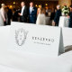 This crest black and white greenery wedding reserved sign from the Daphne Collection is perfect for a traditional wedding.