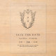 The simple yet classic design features an elegant and timeless crest monogram with florals and greenery surrounding the initials of the couple.