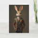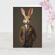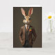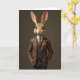 Designed with a formal portrait feel, this card features an upright bunny figure 🐇 with soft light-brown fur, tall alert ears, and dark eyes framed by fine lashes, set against a muted brown background with gentle lighting. A small pink nose and long whiskers give the face a tender, attentive look, like it’s quietly posing for someone special. The bunny wears a chocolate-brown jacket over a deeper gray waistcoat and trousers, with a crisp white shirt and a warm orange tie that adds a friendly, romantic touch. Its hands rest in the jacket pockets, creating an easy, confident stance that feels welcoming rather than stiff. Centered near the top, the greeting appears in a light cream color, standing out softly against the darker backdrop. A tiny 🌷 motif sits beside the text, echoing the spring theme without taking attention away from the portrait. In the jacket’s breast pocket, three small orange carrots with bright green tops form a neat little bouquet.