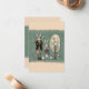 Easter card with green torn paper background both fron and back. Depending upon size the torn aspect may not be shown or printed on all. If this is a problem, please contact us and we will resize to fit your needs. Dapper Rabbit and girl standing with arms crossed and girl wearing bunny ears. Tree in collage springtime effect. The colors may not print in neon, but the closest colors will be chosen. Rabbit and egg also on illustration.