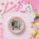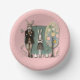 Dapper Easter paper ware for dining. Print of a dapper bunny and girl with coordinating outfits, glasses, and bunny ears. Spring image with green background and collage tree, also includes a rabbit and egg all in collage style.