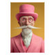 An eccentric gentleman dressed in a striking pink suit, matching top hat, and round glasses. His iconic long white mustache and sophisticated cravat make this portrait a bold blend of elegance and whimsy, perfect for art and fashion lovers.