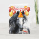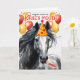 Beautiful dapple grey horse is ready to share in the birthday celebration and sends a bit of humor to anyone who loves horses or shares their life with a dapple.