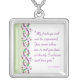 I’ve had my pendant for maybe 4 weeks now. It’s perfect. This design has a special personal meaning to me and it’s perfect! .