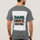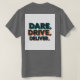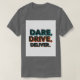 The t-shirt design features the phrase "Dare, Drive, Deliver" printed in large, bold letters on the front. The letters have a distressed vintage aesthetic, giving the design a rugged and edgy look. The phrase is printed in a dark color on a light-colored shirt, making it easy to read. The design is simple and eye-catching, and it is sure to make a statement.