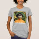 I love wearing a reprint of my colored pencil drawing of Annie the cat looking over the hillside. My illustration is based on a picture I took of Annie the manx cat. The printing turned out lovely, and the shirt is soft and thick. The American Apparel shirt run on the smaller size, so I always order a large or extra large.
