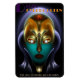 The portrait has a retro sci-fi book cover or movie poster look with the queen in the center, a title above her and a caption below her.