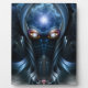 It uses the eyes of the piece Daria Cyborg Queen to build a mechanical battled armored warrior portrait with a menacing blue steel look.