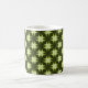 Daring Discs patterned mug in olive green. A funky and snazzy mug in which to drink your favorite hot beverage! Customize with text of your own choosing!