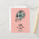 "Life is either a daring adventure or nothing" inspirational quote by Helen Keller, postcard art design with black and aquamarine skull vector illustration on peach background.