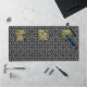However, this dark, abstract and intricate geometric design does make the color in the images "pop" and stand out. A perfect blend of style and functionality for your workspace, the pattern being both modern and a bit retro at the same time.
