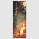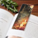 Immerse yourself in a romantic ambiance with this dark academia personalized bookmark, featuring rich, deep colors and intricate floral details. The background transitions from shadowy hues to a subtle warm glow, adorned with lush roses in blush pink, burnt orange, and creamy white at the top right and bottom corners. Two softly glowing candles with visible flames sit amidst autumn-inspired botanicals at the bottom, radiating warmth and coziness. Flecks of gold light shimmer throughout, adding depth and a hint of magic. Capturing the essence of moody elegance, this personalized accessory is perfect for adding a touch of intellectual romance to your reading.