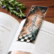 Step into an abandoned world with this dark academia personalized bookmark, evoking a mysterious, melancholic ballroom. A backdrop of deep charcoal, muted teal, and oxidized copper creates a textured grunge, where faded golden and sepia floral elements cling to the edges. The lower portion reveals a distressed checkerboard floor with worn, cracked black and white tiles, showcasing a jarring juxtaposition of order and decay. The design artfully balances stark lines with soft, decaying blooms, evoking a sense of abandoned elegance and forgotten memories. Capturing the essence of mystery and lingering stories from the past, this personalized accessory is perfect for a dark, introspective read.