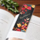 Evoke the air of a quiet study with this dark academia personalized bookmark, cloaked in shadows and vibrant leaves. Deeply saturated leaves in crimson, burnt orange, gold, and moody teal cascade down, their richly textured surfaces meticulously sketched like ancient parchment. The dark, textured background of deep charcoal black with hints of midnight blue resembles aged, worn cloth, making the striking leaf forms almost glow. Intertwining like climbing ivy or forgotten botanical sketches, the design creates a feeling of secrecy, like an untouched manuscript or ancient herbarium. Capturing elegant decay, scholarly beauty, and quiet mystery, this personalized accessory adds a timeless, intellectual charm to your reading.