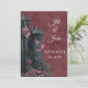 This Dark Academia Gothic Princess Castle illustration is a breathtaking centerpiece for a dark fairytale wedding. Set against a deep, textured maroon backdrop that mimics the look of aged velvet, the towering charcoal-grey stone architecture feels both ancient and regal. Cascading down the turrets and blooming at the fortress base are clusters of matching dusty pink English Roses and delicate Cherry Blossoms, providing a soft, romantic contrast to the sharp, gothic spires. With the castle positioned elegantly to the left, the design leaves a sweeping, moody space on the right, perfectly suited for gold or silver calligraphy.