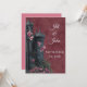 This Dark Academia Gothic Princess Castle illustration is a breathtaking centerpiece for a dark fairytale wedding. Set against a deep, textured maroon backdrop that mimics the look of aged velvet, the towering charcoal-grey stone architecture feels both ancient and regal. Cascading down the turrets and blooming at the fortress base are clusters of matching dusty pink English Roses and delicate Cherry Blossoms, providing a soft, romantic contrast to the sharp, gothic spires. With the castle positioned elegantly to the left, the design leaves a sweeping, moody space on the right, perfectly suited for gold or silver calligraphy.