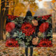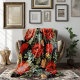 Dark Academia Maximalist Red Dahlia Floral Fleece Blanket