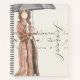 Capture your thoughts and musings in this beautifully illustrated spiral notebook. Featuring a watercolor painting of a woman in a classic brown trench coat holding an umbrella, this design is layered over a backdrop of vintage cursive calligraphy for a timeless, academic feel.