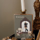 Celebrate your graduate with this dark academia themed graduation announcement. This flat panel announcement is ready to be customized with your own photo and information on the front and your own message on the back. It features an illustration of a skull, a candle in a candlestick, some antique books and an ornate frame set against a dark gray-green background.