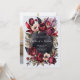 This wedding Save the Date, invitation design features a moody dark aesthetic feel. It’s designed with beautiful deep red, purple/plum, and cream flowers. The background contains a black watercolor wash with green foliage. Designed in a deep, sophisticated color scheme. Personalize the template with the bride and groom's names in elegant script typography. The back of the invitation features an option to put the couple's photo.