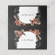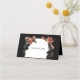 This customizable place card combines elegance with a touch of drama, perfect for a sophisticated event. The dark background is beautifully accented with vibrant orange and blush florals along with lush green leaves framing the guest's name area. The card reads “Thank you for being our guest!” but can be personalized with any message of your choice, making it versatile for weddings, dinners, or special gatherings. The stylish design adds a memorable touch to each place setting, blending gratitude with refined style.