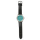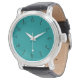 Like any great piece of jewelry, this watch with a dark aqua-colored face featuring black numerals will go with nearly any ensemble.