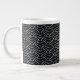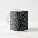Inspired by Japanese wave patterns, seigaiha, and the elemental magic found in fantasy worlds, this design represents darkness, with bright, pale blues arcing around deep blacks like the light at the edge of the event horizon as it is being sucked into the ultimate dark of a black hole. This mug is available in jumbo, espresso, and bone china sizes and styles.
