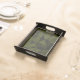This is a well made, sturdy wooden tray with a flawless black finish and lovely map on the tray surface. It is both vintage & modern at the same time. Looks exactly like the photo; does not disappoint. So nice to find something of quality individually made and not the mass-produced 'shabby chic' merchandise seen in stores. I am so pleased to be able to give this to my college-age niece for her birthday. This can be used as a tray to hold jewelry or toiletries, or hung on the wall as art. The map surface is sealed (it is slightly shiny) so would be moisture resistant. It is well worth the asking price but I was able to apply a sale code as well. Very happy with my purchase. Map is crisp & clear and sealed with a water-resitant finish.