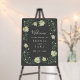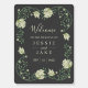 Welcome your guests with this striking wedding sign, featuring an elegant Art Nouveau-inspired floral design set against a dark background. The flowing vines and delicate botanical illustrations in soft cream and sage green tones stand out beautifully, creating a dramatic yet timeless look. Perfect for evening, garden, or outdoor weddings, this sign adds an air of sophistication and romance. The graceful script and vintage style make it an ideal piece to greet your guests and set the mood for an unforgettable celebration.