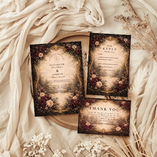 Dark Baroque Floral Wedding Invitation